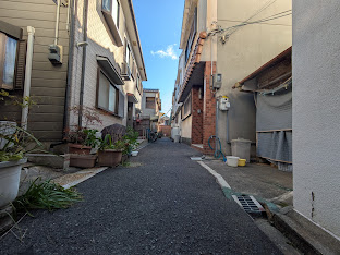 安立には戦前建築の名残、昭和の町割り、狭小道路